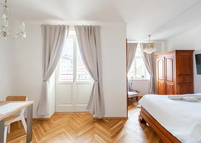 Apartmán Little Chateau nabízí kuchyňku i pokoje s balkónem, přístrojem na přípravu kávy a čaje, televizí. Toto ubytování o rozloze 35 m^2 ve městě Praha se nachází kousek od Obecní dům a 5 minut chůze od stanice metra Můstek.